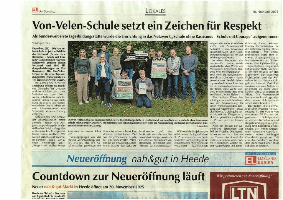 Sie wollen, dass es an der Von-Velen-Schule keinen Rassismus und kein Mobbing gibt.