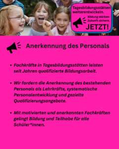 Weitere Infos zur Demo für die Zukunft von Tagesbildungsstätten